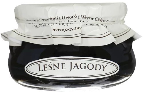 Konfitura z leśnych jagód to całe owoce czarnej jagody zawieszone są w gęstym syropie. Duża zawartość cukru pozwala wydobyć intensywny kolor i smak owoców. Wystarczy, więc jedynie odrobina konfitury, żeby przenieść się do lasu pełnego jagód, a nasz spory słoik pozwala się długo cieszyć tymi wycieczkami. Cukier nadaje konfiturze piękną szklistą barwę i zapobiega psuciu się zawartości słoika. Dzięki temu otwarta konfitura może być długo przechowywana.