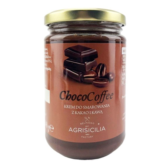 Krem do smarowania z kakao i kawą. Idealnie sprawdzi się jako dodatek do pieczywa, ciastek, naleśników czy też deserów.