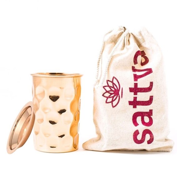 KUBEK MIEDZIANY DIAMOND Z POKRYWKĄ 350 ml - SATTVA (AYURVEDA)