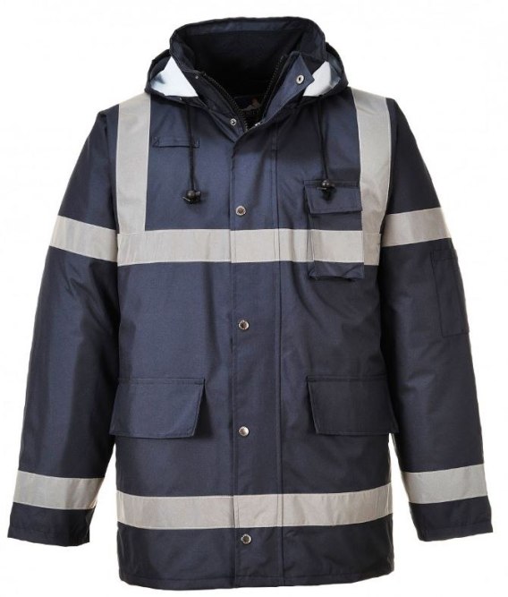 Odzież jest certyfikowana zgodnie z normą wodoodporności EN 343 (klasa 3) i normą dotyczącą zwiększonej widoczności EN 17353.