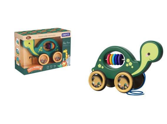 KX5431 Grzechotka drewniana na sznurku mobilna żółw