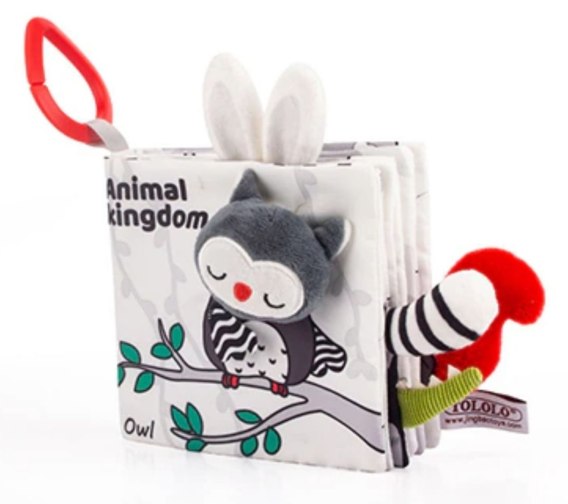 KSIĄŻECZKA SENSORYCZNA MIĘKKA METKI SOWAPierwsza lektura Twojego dziecka! Zabierz malucha w magiczną podróż po świecie kształtów i wzorów.Magiczna materiałowa książeczka w kontrastowe wzory to świetna propozycja dla dzieci dopiero poznających świat. Obrazki w kontrastowych kolorachbędą doskonałym wstępem do poznania zwierząt.Książeczka składa się z 4 materiałowych stron przedstawiających różne zwierzątka wśród których znajdziesz: Sowę małpkę pandę szopa słonia króliczka krokodyla zebręWykonana z dbałością o każdy szczegół ze szczególnym uwzględnieniem potrzeb najmłodszych. Lektura jest pełna niespodzianek, które pobudzą ciekawość malucha.Znajdziesz w niej strony o różnych fakturach i właściwościach: Szeleszczące strony Kontrastowe metki wystające po za strony książeczki kontrastowe wzory stronę z wszystką grzechotką stronę z wszytą piszczałką Nazwy zwierząt w języku angielskimWszystko to by zadbać o harmonijny rozwój Twojej pociechy.Dzieci rozwijają się i uczą otoczenia poprzez zmysły. Zmysły również wpływają wzajemnie na siebie. Właściwy rozwój wszystkich pozwala lepiej analizować świat i reagować na bodźce z zewnątrz, a także budować świadomość własnego ciała i jego funkcji. >Poprzez zabawę książeczką maluch: Będzie ćwiczył akomodację oka rozwinie koordynacją wzrokowo-ruchową będzie ćwiczył rozwój zdolności manualnych i umiejętność chwytania. pobudzi zmysł wzroku, słuchu i dotyku.Kontrastowe wzory przyciągną uwagę maluszka i zachęcą do zabawy. Do książeczki przymocowano zawieszę, która umożliwi przymocowanie jej do wózka, łóżeczka lub nosidełka.Dzięki temu, że w całości została wykonana z materiału jest lekka i nie zajmuje wiele miejsca. Możesz zabrać ją w podróż lub na wizytę do lekarza- umili dziecku czas podczas oczekiwania w długiej kolejce.Materiał: poliester + pluszWiek dziecka: 0+Wymiary książeczki: Wymiary opakowania:Zapakowana w foliowe opakowanie. > >