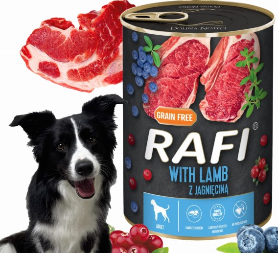 Karma Mokra Dla Psów RAFI z Jagnięciną, Borówką i Żurawiną 400g - 1 szt.