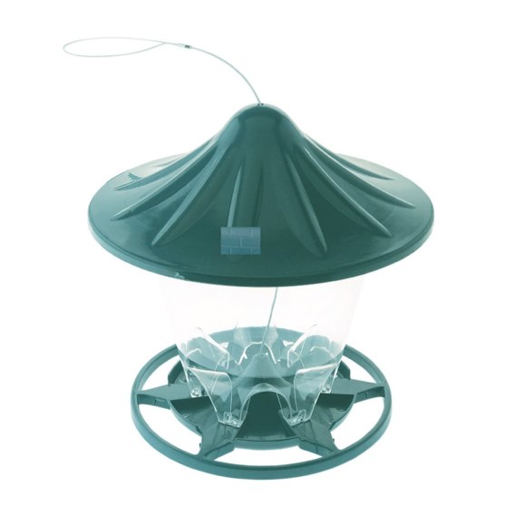 Specjalnie zaprojektowany kształt chroni ziarno przed deszczem i śniegiem, zapobiegając jego zawilgoceniu i pleśnieniu. Dzięki temu pokarm pozostaje świeży i atrakcyjny dla ptaków, zachęcając je do częstszych odwiedzin.