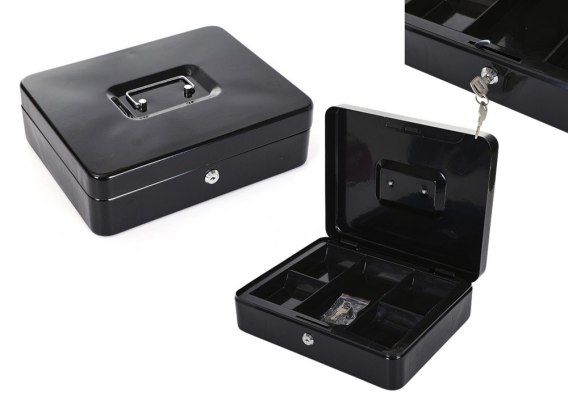 Kasetka Skrzynka Na Pieniądze Metalowa Z Przegródkami 2 Kluczyki Czarna