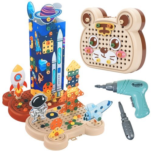 - Elektryczna wkrętarka- prawdziwe narzędzie w małych rączkach! Pomaga wkręcać i wykręcać elementy, rozwijając koordynację i zdolności manualne.
