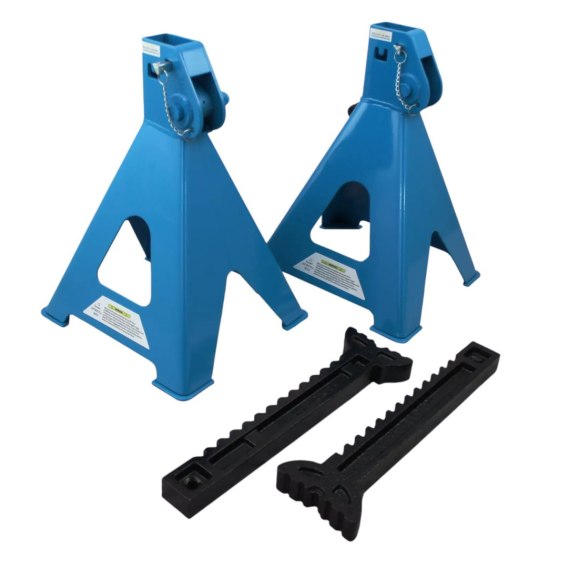 Zestaw 2 kobyłek o nośności 12T z 12-stopniową regulacją wysokości (447-748 mm). Wytrzymała konstrukcja z grubej stali, mechanizm zapadkowy i solidna podstawa. Idealne do warsztatów, garaży i przemysłu. Bezpieczne i niezawodne.