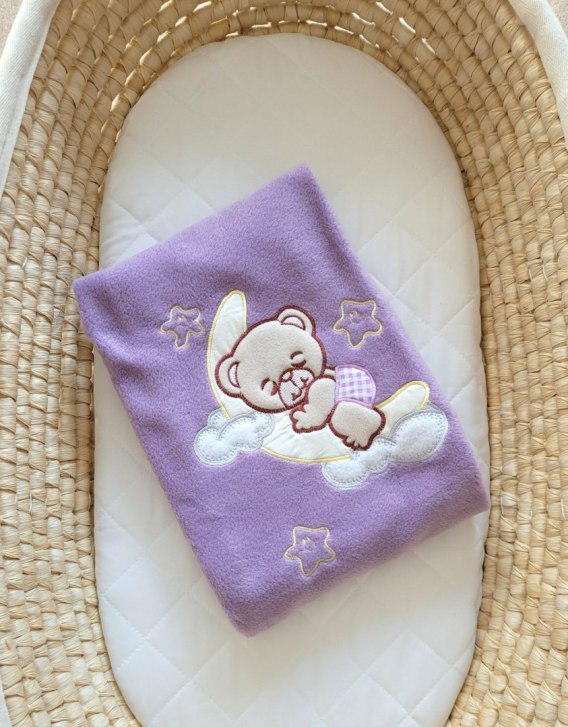 Kocyk polarowy dla niemowląt - Dobranoc fioletowe