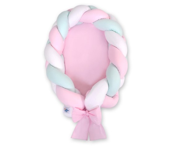 Kokon niemowlęcy pleciony 2 w 1 - biało-różowo-miętowy