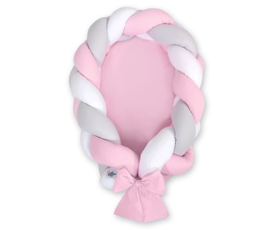 Kokon niemowlęcy pleciony 2 w 1 - biało-szaro-różowy