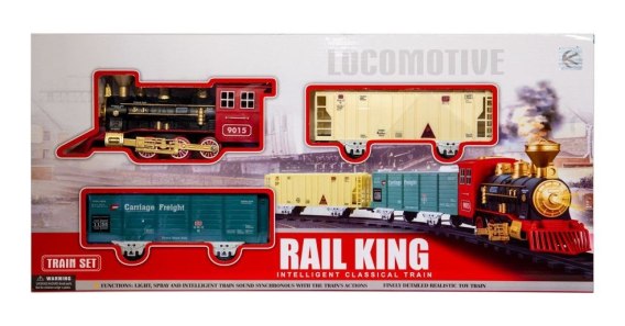 Kto z nas nie marzył kiedyś o własnej kolejce? Zabawa nią to dla dziecka znakomita okazja do pobudzenia wyobraźni i zdolności manualnych. Dla rodziców to możliwość aktywnego spędzania czasu z dzieckiem. Zestaw składa się z 8 odcinków torów, lokomotywy i dwóch wagonów. Poszczególne elementy toru bardzo łatwo się ze sobą łączą tworząc trasę w kształcie okręgu. Lokomotywa wyposażona jest w światło LED, po uruchomieniu imituje odgłosy jadącego pociągu, a dodatkowo wraz z upływem czasu przyspiesza. Najatrakcyjniejszą cechą kolejki jest możliwość wytworzenia pary wodnej. Przy pomocy dołączonej do zestawu buteleczki napełniamy wodą zbiorniczek w lokomotywie i gotowe: „para buch, koła w ruch...", dokładnie jak w znanym każdemu wierszyku! Realistyczny wygląd i dźwięki kolejki to dodatkowa zachęta do wspaniałej zabawy. Niepowtarzalne emocje towarzyszące wykorzystaniu poszczególnych elementów zestawu to tylko wstęp do prawdziwej rodzinnej zabawy. Produkt zapakowany jest w kartonowe pudełko, które świetnie nadaje się na prezent.