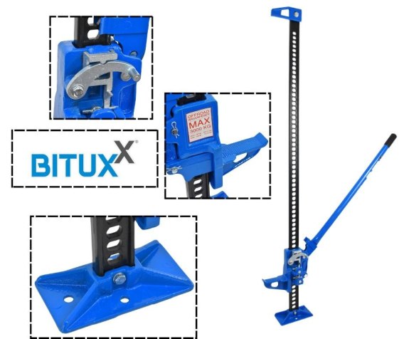 Pojazdy z wysoko zawieszonym podwoziem wymagają specjalnych podnośników. Dzięki temu podnośnikowi opanujesz każdy teren i sytuację. Bez względu na to, czy to zmiana kół, czy konserwacja jest w terenie lub w warsztacie nasz lewarek sprawdzi się doskonale. 3-tonowy udźwig podnośnika i nieprawdopodobna wysokość podnoszenia wynosząca 132 cm oferują pożądany zakres dla różnych pojazdów.Lewarek jest wyposażony w długą dźwignię, unosi pojazd na żądaną wysokość, zawór zwrotny zapewnia odpowiednie zabezpieczenie.
