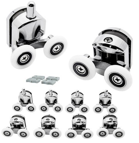 UNIWERSALNE? rolki zostały wykonane z chromu, tworzywa sztucznego, nylonu oraz stali odpornej na korozję. Pasują do wszystkich kabin prysznicowych w których zastosowano tego typu łożyska kulkowe. Rolki wraz z kółkami dzięki uchylnej konstrukcji dopasowują się do kształtu prowadnicy.Pasują do kabin zarówno kwadratowych jak i półokrągłych.