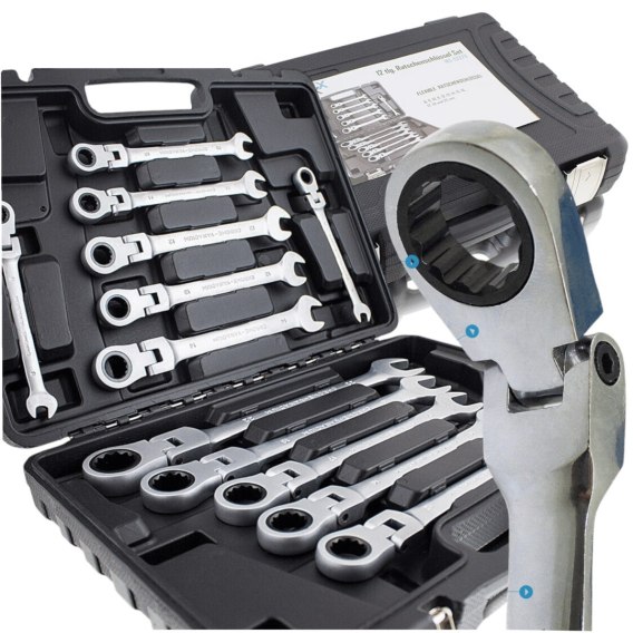 Kompletny zestaw 12 kluczy płasko-oczkowych z grzechotką to niezastąpione narzędzie zarówno dla profesjonalistów, jak i majsterkowiczów. Klucze wykonane zostały z wysokogatunkowej stali chromowo-wanadowej CrV, dzięki czemu są odporne na korozję i uszkodzenia mechaniczne.