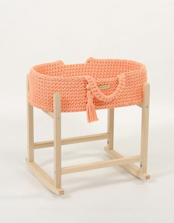 Kosz Mojżesza BOHO bawełniany nosidełko dla lalek z drewnianą kołyską - brzoskwinia