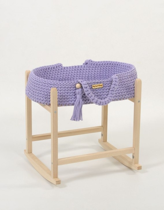 Kosz Mojżesza BOHO bawełniany nosidełko dla lalek z drewnianą kołyską - fioletowy