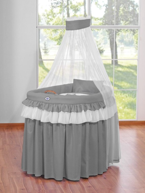 Kosz Mojżesza wiklinowy z baldachimem- Little Prince Princess antracyt