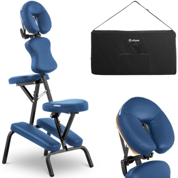 Krzesło marki Physa sprawdzi się w salonie masażu, kosmetycznym czy tatuażu. Przeznaczone zostało do leczenia bolących pleców lub szyi. Konstrukcję krzesła wykonano z solidnej stali o nośności do 130 kg. Przemyślana konstrukcja gwarantuje równomierne rozłożenie ciężaru i stabilność podczas użytkowania. Podłokietnik pomaga przyjąć zrelaksowaną i wygodną pozycję. Tapicerowane powierzchnie zapewniają komfort siedzenia. Wysokość zagłówka jest regulowana w zakresie 1150 - 1350 mm oraz kąt nachylenia -90 - 45deg;. Klęcznik obity został PVC, jest łatwy w utrzymaniu czystości, odporny na olejki i wodę. Składana konstrukcja umożliwia łatwy transport. W komplecie znajduje się torba. Cechy produktu: