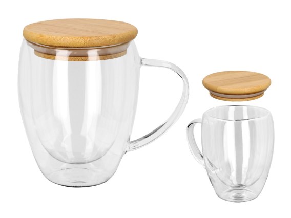 Kubek szklan z podwójnymi ściankami i przykrywką