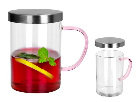 Kubek szklan z podwójnymi ściankami i przykrywką