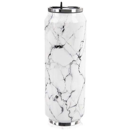 Wykonany ze stali nierdzewnej - Wykonany ze stali nierdzewnej w białym kolorze ozdobiony marmurkowym wzorem. Ustnik w kolorze czarnym wykonany z tworzywa.