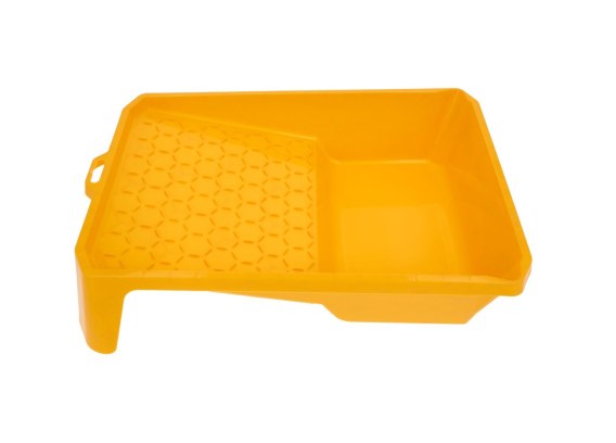 Plastikowa kuweta znakomicie pasuje do wałków o szerokości do 18 cm. Służy do wygodnego nabierania i odsączania farby.