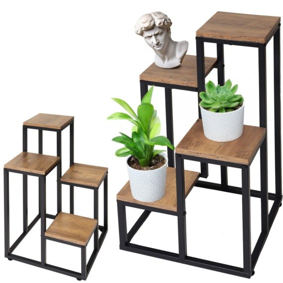 Solidny kwietnik wykonany ze stalowych profili malowanych proszkowo i płyt laminowanych w kolorze rustykalnego dębu. Cechuje go proste wzornictwo i atrakcyjny design, który wpasuje się w każde pomieszczenie. Kwietnik ma wytrzymałą stalową konstrukcję oraz 4 stabilne półki na kwiaty oraz dekoracje. Wykonany z najwyższej jakości materiałów z zachowaniem dbałości o najdrobniejsze detale. Doskonale nadaje się do eksponowania kwiatów i pokazania ich wyjątkowych walorów.