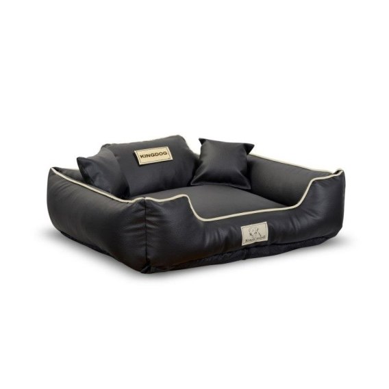 Wykonane z ECOSKÓRY, ROZBIERALNE z zamkiem, antypoślizgowe legowisko dla psaw kolorze czarnymz białą lamówką, PERSONALIZOWANE imieniem pupila!