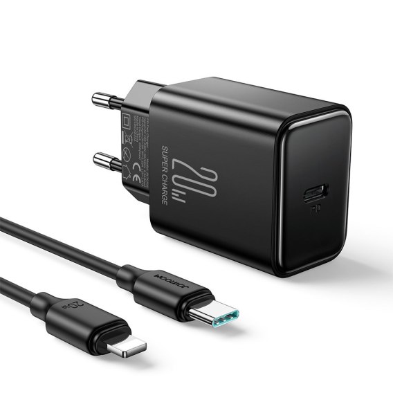 Ładowarka sieciowa USB-C 20W PD z kablem do iPhone Lightning czarna