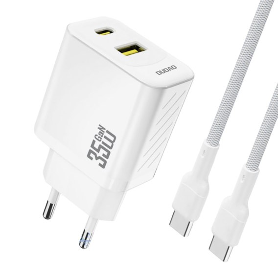 Dudao A27 MaxC to kompaktowa i wydajna ładowarka sieciowa z mocą do 35 W, która umożliwia szybkie i bezpieczne ładowanie wielu urządzeń. Wyposażona w dwa porty - USB-C oraz USB-A - pozwala na jednoczesne podłączenie różnych sprzętów, co zwiększa jej funkcjonalność w codziennym użytkowaniu. W zestawie znajduje się kabel USB-C o długości 1 m, wspierający szybkie ładowanie i transfer danych. Biała kolorystyka, lekka konstrukcja i kompaktowe wymiary sprawiają, że ładowarka idealnie nadaje się zarówno do domu, biura, jak i podróży. Najważniejsze cechy: