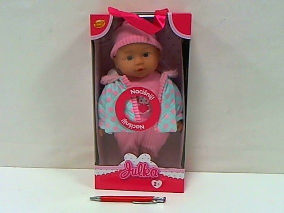 Lalka Julka lubi, kiedy się nią opiekujesz i zabierasz ze sobą na spacery. Miękka lalka jest ubrana w czapkę, kombinezon z prążkowanymi spodniami i pikowaną kurtkę z kapturem.