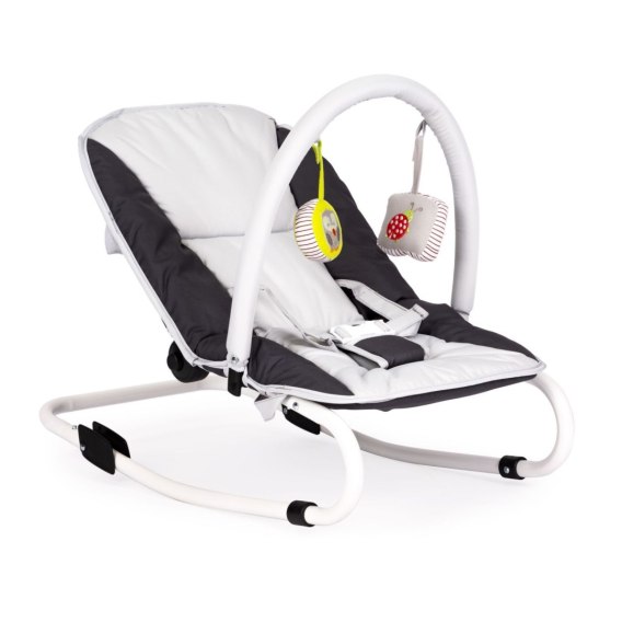 Leżaczek bujaczek składana kołyska z zabawkami biało-grafitowy