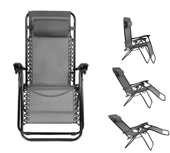 Leżak ogrodowy, plażowy, fotel składany z zagłówkiem szary