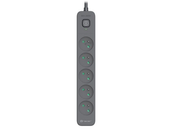 Listwa zasilająca antyprzepięciowa TRACER Power Line+ 3,0 m Graphite (5 gniazd)