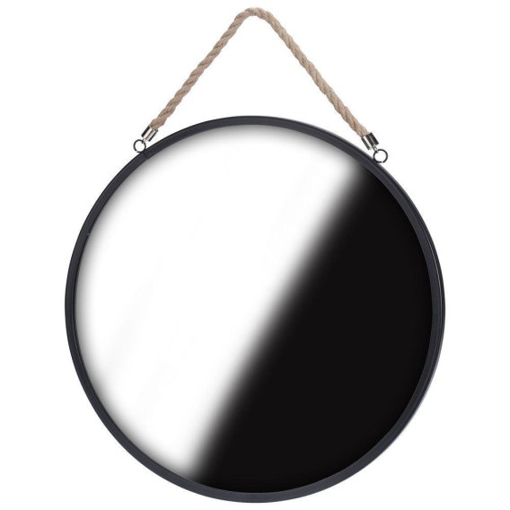 Lustro okrągłe na sznurku pasku czarne loft 41 cm