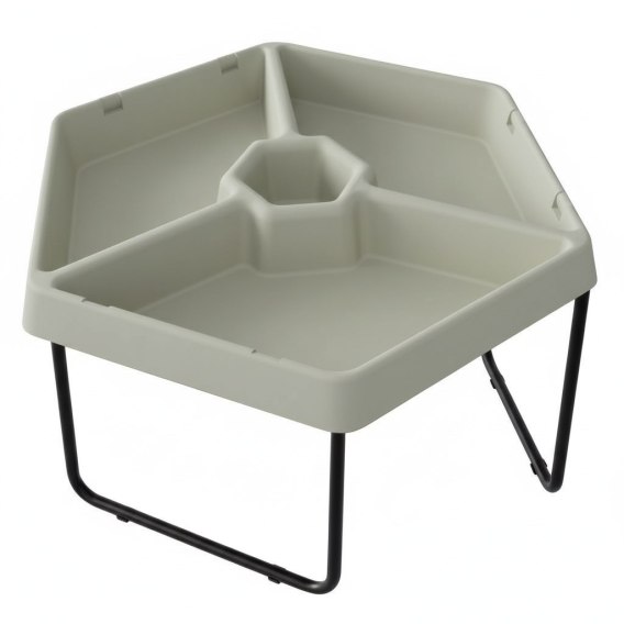 - Sześciokątna taca podzielona na 3 oddzielne komory - idealna do prowadzenia trzech aktywności w tym samym czasie lub pracy z trzema różnymi substancjami.