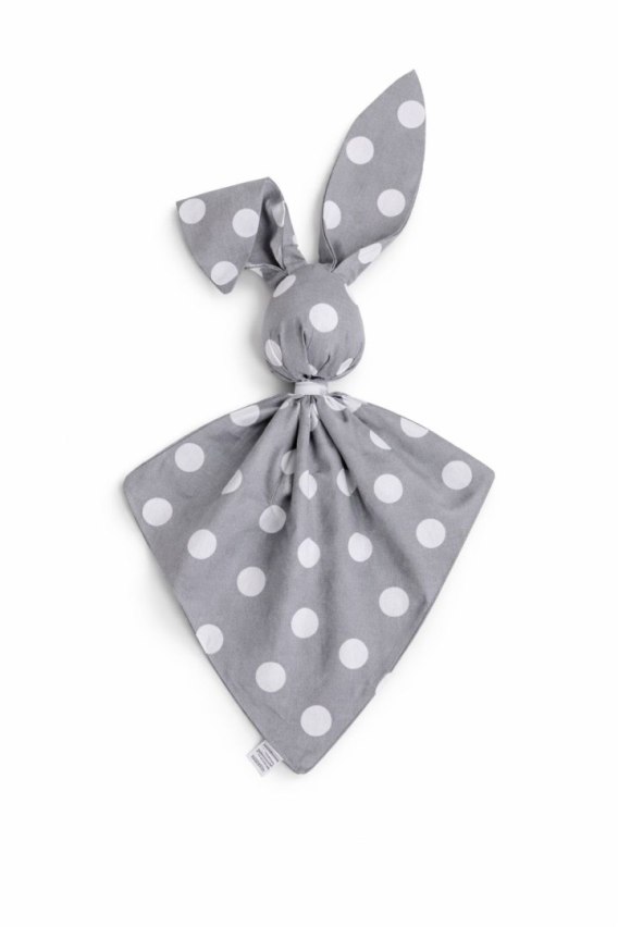 Miękka przytulanka DOUDOU kocyk króliczek z bawełny - Duże grochy na szarym