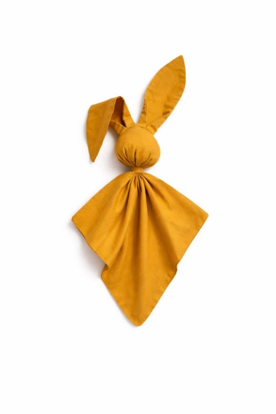Miękka przytulanka DOUDOU kocyk króliczek z bawełny - Musztarda
