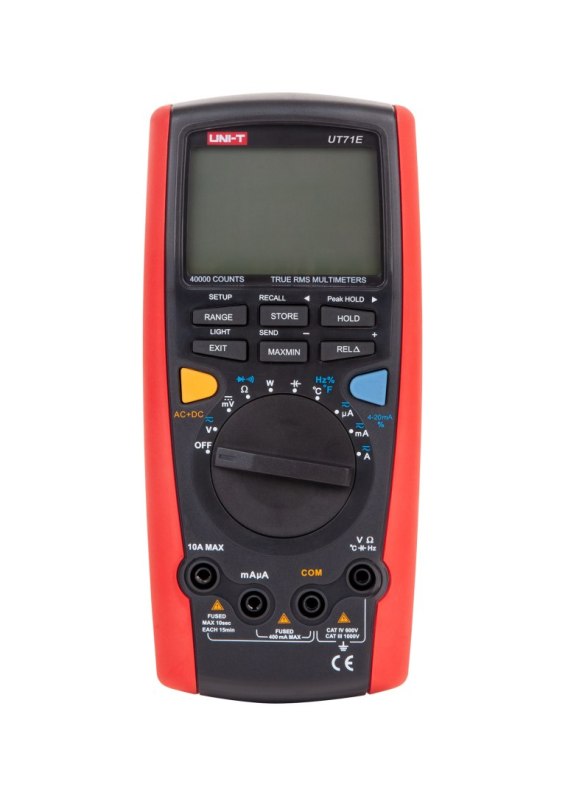 UT71E jest wyposażony w duży wyświetlacz LCD (73 x 50 mm) z analogowym bargrafem, co zapewnia czytelność odczytów nawet w trudnych warunkach. Miernik posiada funkcję automatycznej i ręcznej zmiany zakresów pomiarowych, co zwiększa wygodę użytkowania. Dodatkowe funkcje, takie jak zamrożenie ostatniego wskazania, zapis i kasowanie odczytów, oraz przywoływanie zapamiętanych wyników, ułatwiają pracę i analizę danych.