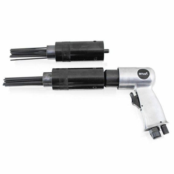 Za pomocą młotka igłowego na sprężone powietrze można z łatwością i szybkością usunąć rdzę oraz przeróżne powłoki z części metalowych. Świetnie sprawdzi się również do usuwania żużla spawalniczego, tynku, farby czy też betonu. Wysoka jakość wykonania igieł pozwala na wielogodzinną pracę, a głowicę igły można z łatwością wymienić na inną.