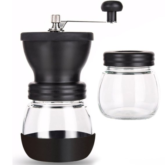 Ręczny młynek do kawy wykonany z wysokiej jakości szkła i tworzywa sztucznego z ceramicznym rdzeniem mielącym. Stylowy i praktyczny, idealny do przygotowania świeżej kawy w domu oraz jako elegancki element dekoracyjny kuchni. Młynek umożliwia ręczne mielenie ziaren kawy oraz przypraw, takich jak kminek, mak czy pieprz, pozwalając wydobyć pełnię aromatu i smaku. Regulacja grubości mielenia pozwala dopasować napar do indywidualnych preferencji, a obrotowa korbka ułatwia użycie.
