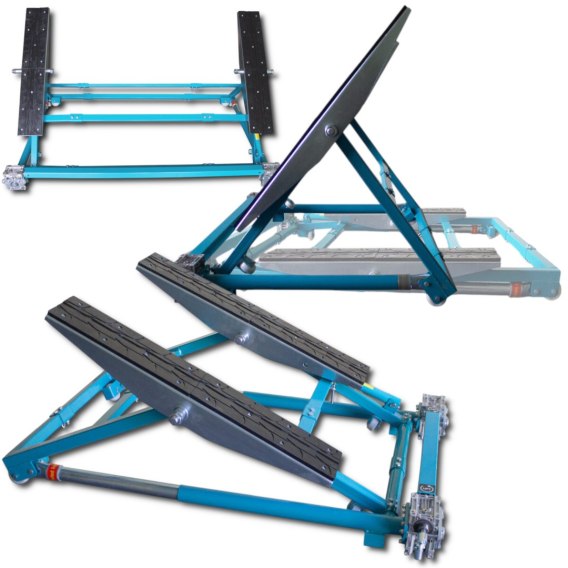 Mobilny podnośnik uchylny warsztatowy o nośności 2000 kg, z 3-stopniową regulacją szerokości i antypoślizgowymi rampami. Solidna konstrukcja stalowa, idealna dla profesjonalistów i majsterkowiczów.