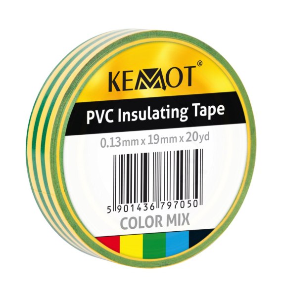 NAR0436 Taśma izolacyjna klejąca REBEL (0,13 mm x 19 mm x 20 yd) żółto-zielona