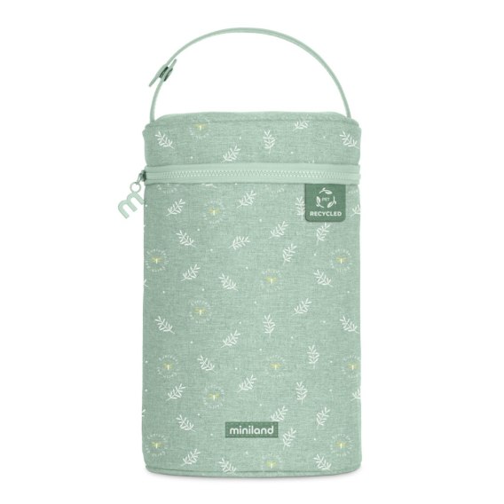 Podwójna torba izotermiczna z kolekcji Miniland ECO-friendlly, idealna do transportu termosu, butelki i butelek do karmienia dziecka. Chroń termosy i butelki przed zmianami temperatury i wstrząsami, aby dłużej pozostały świeże, ciepłe lub zimne zależnie od potrzeby.