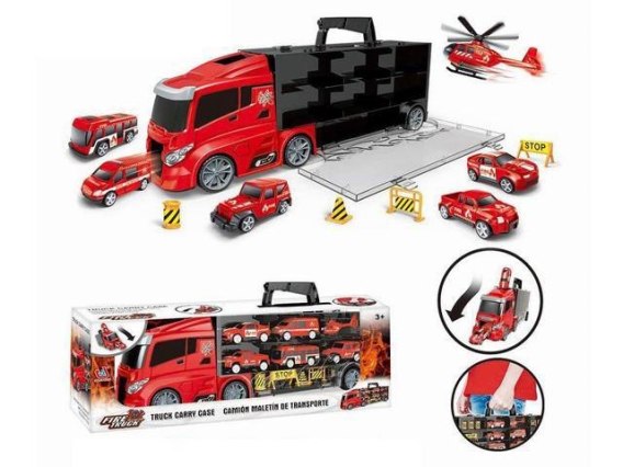 ND21_108441 Laweta ciężarówka z autami straży pożarnej