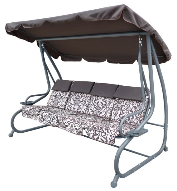 Huśtawka ogrodowa z rozkładanym siedziskiem i regulacją daszka, ciemny brąz ze wzorem [8078 PATTERN CB]