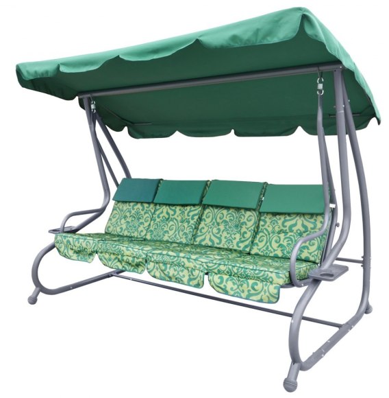 Huśtawka ogrodowa z rozkładanym siedziskiem i regulacją daszka, zielona ze wzorem [8078 PATTERN Z]