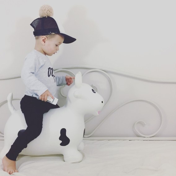 ND31_J06_007_0_1 Skoczek gumowy dla dzieci BYCZEK 55 cm biały do skakania z pompką