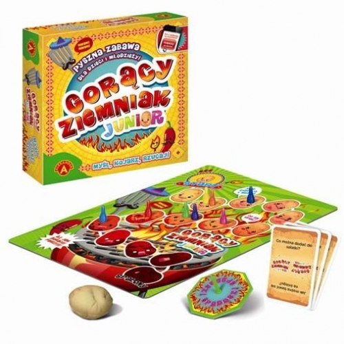 Przezabawna gra rodzinna, sprawdzająca refleks. Myśl, kojarz, rzucaj i pozbądź się Gorącego Ziemniaka zanim się sparzysz Rozłóż planszę na stole. Grę rozpoczyna najniższy z graczy biorąc pluszowego ziemniaka do ręki. Osoba siedząca po jego prawej stronie wyciągai pierwszą kartę z talii i czyta na głos pytanie. Następnie energicznie kręci bączkiem lub uruchamia aplikację do odmierzania czasu dostępną do pobrania na smartfona. Ten, kto trzyma ziemniaka musi udzielić odpowiedzi na zadane pytanie. Po udzieleniu odpowiedzi jak najszybciej przekazujemy ziemniaka osobie po naszej lewej stronie zgodnie z ruchem wskazówek zegara i ona również musi udzielić odpowiedzi na to samo pytanie. Ziemniak tak długo krąży pomiędzy graczami aż bączek odmierzający czas przestanie się kręcić lub aplikacja na telefonie pokaże stop. Wówczas osoba, która w tym momencie miała pluszowego ziemniaka w ręce spada o jedno pole na planszy. Zawartość opakowania: Plansza do gry 1 szt.. Goracy Ziemniak 1 szt. Karty Pytan 165 szt. Pionki 8 szt. Baczek 1 szt. Instrukcja Wymiary opakowania: 24,5x25,5x6.