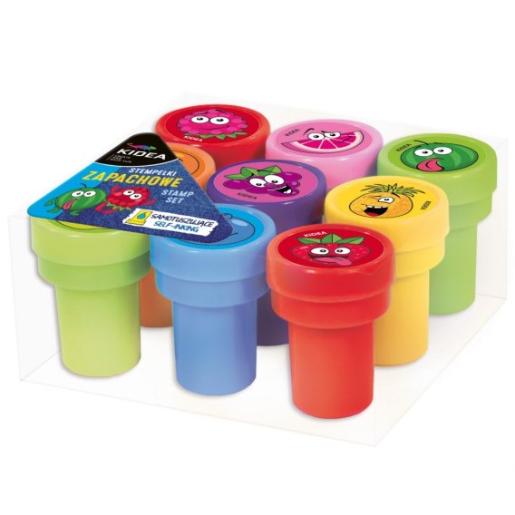 Stempelki zapachowe wzbogacone zostały w przyjemny aromat, który uatrakcyjnia produkt i sprawia, że dzieci chętniej po nie sięgają. Nowe, ciekawe wzory w szalone owoce malina, truskawka, pomarańcza, arbuz, grejpfrut, jagoda, ananas, jabłko, winogrono udekorują każdy rysunek małego artysty. Stempelki są samotuszujące, więc nie wymagają używania dodatkowej poduszki z tuszem.